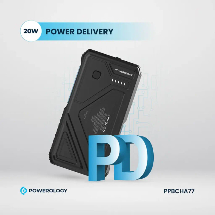 پاوربانک خورشیدی پاورولوژی مدل PPBCHA77 ظرفیت ۲۷ هزار میلیآمپر
