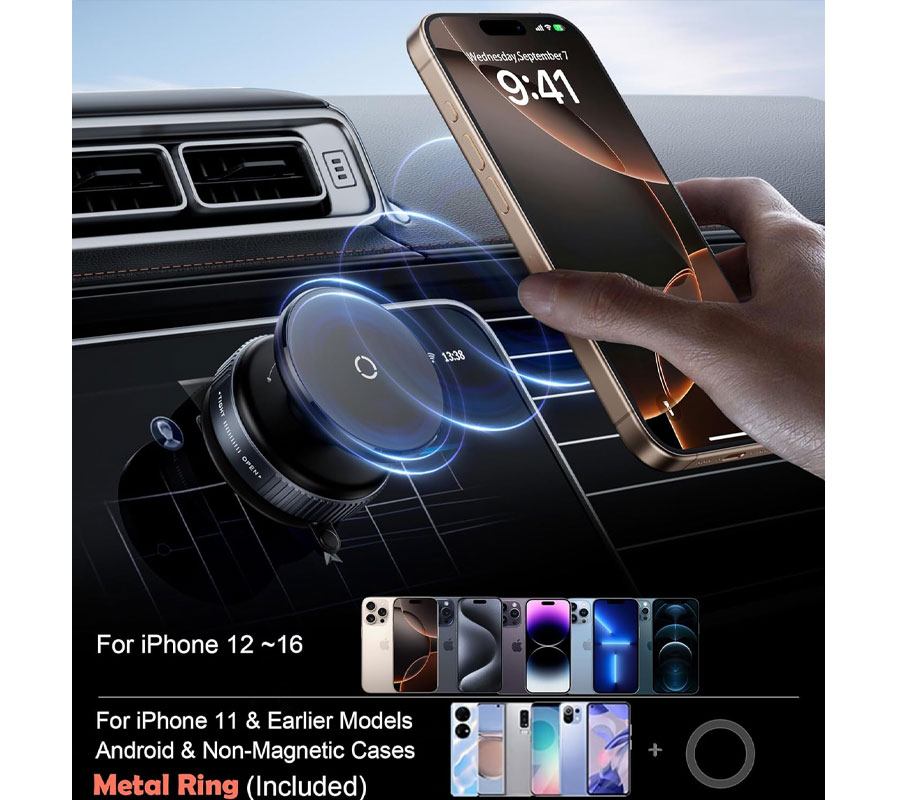 نحوه اتصالش به گوشی هم با طراحی مغناطیسی قوی که داره هست به شکلی که حتی در جاده های پر دست انداز و حرکات ناگهانی ماشین هم به راحتی گوشی رو ثابت نگه میداره