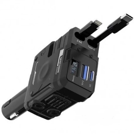 شارژر فندکی 4 کاره طراحی هوشمندانه با سیم سرخود و سیم جمکن داخلی