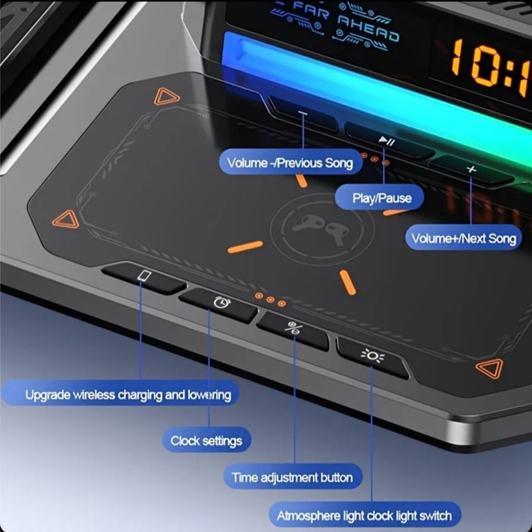 طراحی مینیمال و مدرن با بدنه ABS مقاوم و ابعاد جمع و جور، T50 به راحتی در هر مکانی جا میشود. اتصال بلوتوث ۵.۳ اتصال سریع و پایدار به دستگاه هایتان با جدیدترین فناوری بلوتوث شارژ سریع و بی سیم با فناوری شارژ سریع باتری دستگاه هایتان را در کمترین زمان ممکن شارژ کنید. قابلیت های متنوع علاوه بر شارژ بی سیم ۵۰ دارای ساعت دیجیتال بلندگو و نورپردازی RGB است. پشتیبانی از انواع دستگاه ها ساعت هوشمند هدفون و گوشی موبایل خود را به طور همزمان شارژ کنید.