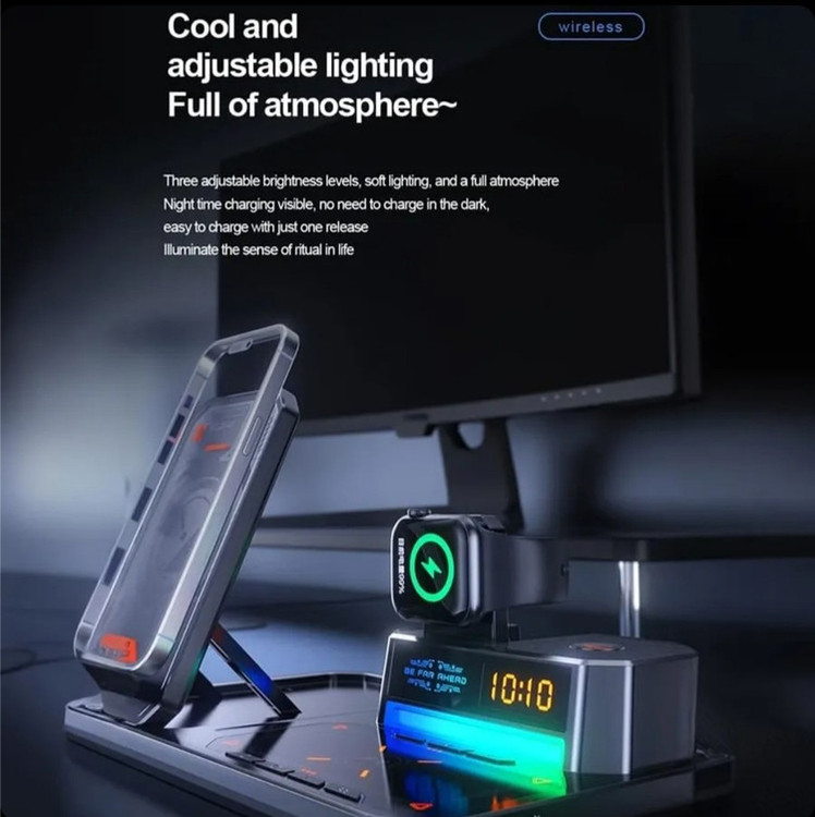 با شارژر بی سیم چند منظوره T50 تجربه شارژ دستگاه هایتان را متحول کنید . این محصول با طراحی زیبا و کاربردی امکان شارژ همزمان تا ۶ دستگاه مختلف را به شما میدهد.