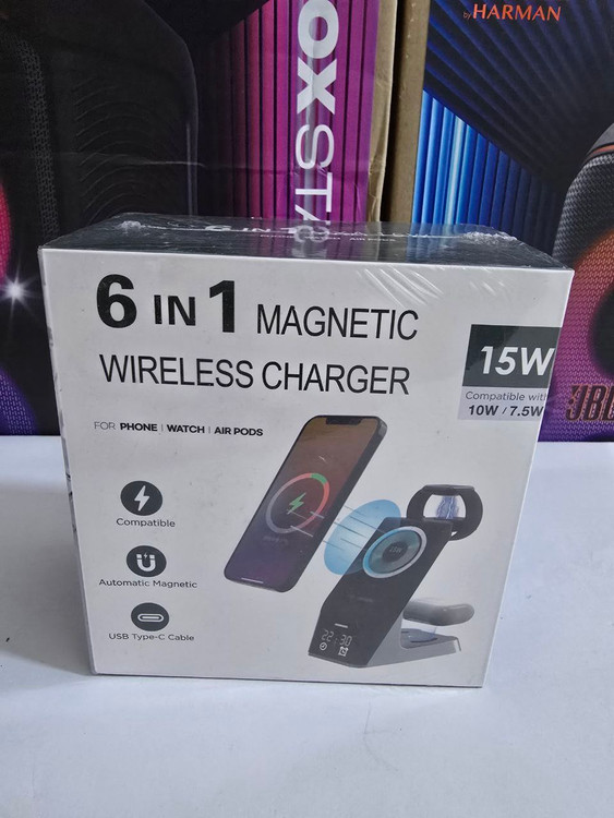 شارژر وایرلس ۶ کاره: امکان شارژ همزمان چند دستگاه مختلف (مانند گوشی، ساعت هوشمند، هدفون و…)