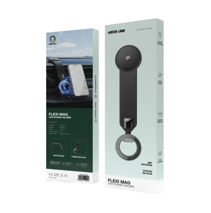 هولدر Green Lion Flexi Mag بهطور خاص برای گوشیهای مجهز به MagSafe طراحی شده است، بنابراین اگر گوشی یا قاب شما از این فناوری پشتیبانی کند، بدون نیاز به هیچ قطعه اضافهای روی هولدر قرار میگیرد. مگنت N52*16 که در این محصول به کار رفته، یکی از قویترین آهنرباهای موجود در بازار است و میتواند گوشی را محکم در جای خود نگه دارد، حتی در جادههای ناهموار و تکانهای شدید.