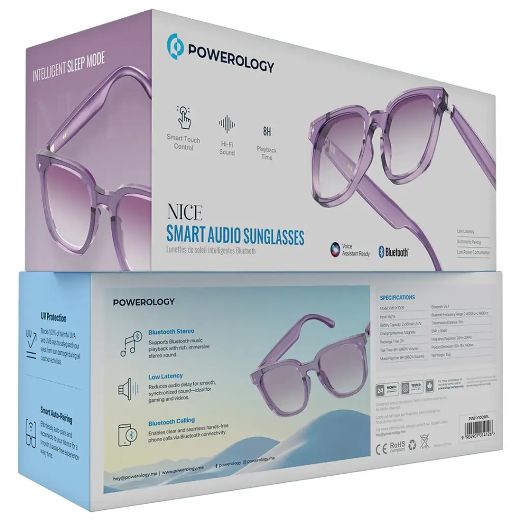 عینک هوشمند صوتی Powerology Nice – رنگ بنفش؛ ترکیبی است از طراحی شیک و فناوری صوتی پیشرفته در قالبی ساده و کاربردی. این عینک با اتصال بیسیم از طریق بلوتوث نسخه ۵.۴، صدای استریو با کیفیت Hi-Fi را ارائه میکند و با تأخیر کم (Low Latency)، تجربهای لذتبخش از موسیقی و تماس فراهم میآورد.