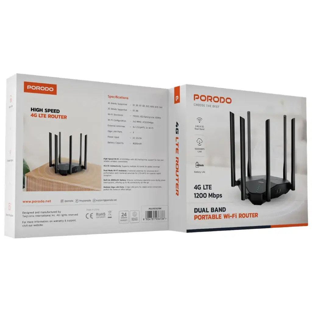 روتر قابل حمل Porodo PDLFST207BK ترکیب پیشرفتهای از اتصالات پرسرعت موبایلی و وای-فای دو بانده است که برای افرادی طراحی شده که نیاز به اینترنت همراه با قابلیت انتقال داده بالا، سیگنال قوی، و عملکرد قابل اعتماد در شرایط متحرک یا مکانهایی بدون اینترنت ثابت دارند. این دستگاه با توانایی پشتیبانی از شبکههای 4G / 3G، استفاده از سیمکارت نانو، باتری داخلی برای کار بدون برق، و چند درگاه LAN گیگابیتی، میتواند هم در سفر، هم در منزل یا دفترهایی کوچک یا در مناطقی که زیرساخت اینترنت محدودی دارد مفید باشد.