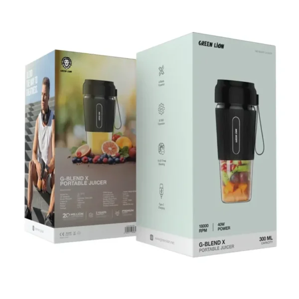 آبمیوه گیری پرتابل Green Lion G-Blend X یک مخلوط کن قدرتمند و جمع و جور است که برای ساده کردن عملیات سریعتر طراحی شده است. آبمیوه گیری 300 میلی لیتری دارای موتور قدرتمند 40 واتی است که با سرعت باورنکردنی بین 12000 تا 18000 RPH کار می کند و ترکیب را روان می کند. همچنین دارای یک فولاد ضد زنگ 6 تیغه 304 می باشد که آن را در عملیات اختلاط و تسریع برای اجرای 30 ثانیه و حداقل 15 تا 20 بار استفاده از مخلوط کن با یک بار شارژ بسیار موثر می کند. این آبمیوهگیری قابل حمل با باتری 1500 میلیآمپر ساعتی با شارژ Type-C کار میکند و حدود 3 تا 4 ساعت طول میکشد تا کاملاً شارژ شود، که آن را برای مسافرت، محل کار یا استفاده خانگی عالی میکند. این محصول سبک وزن بوده و استفاده از آن بسیار آسان است. همچنین آبمیوه های تازه یا اسموتی های عالی را برای نوشیدنی های با طراوت در حال حرکت با مواد کامپیوتری بسیار قابل حمل مناسب می سازد.
