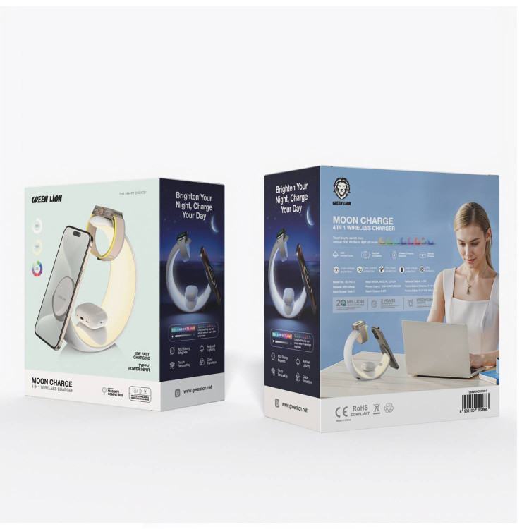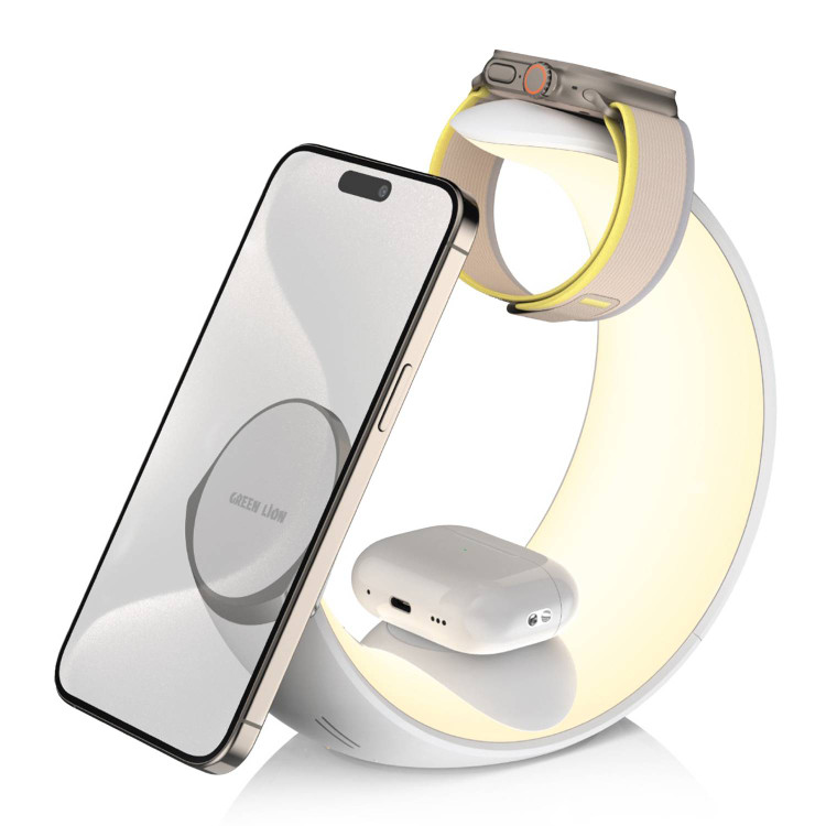 شارژهای وایرلس با توجه به راحتی در استفاده می توانند جایگزین مناسبی برای شارژهای دیواری باشند. گرین لاین تصمیم گرفته تا با طراحی شارژر وایرلس Green Lion Moon Charge یک محصول چند منظوره ارائه کند که میتواند به عنوان شارژر وایرلس و استند استفاده شود. این استند شارژر دارای قابلیت شارژ تا 15 وات را دارا است و شما میتوانید گوشی آیفون، اپل واچ و هندزفری بلوتوثی خود را روی آن شارژ کنید.