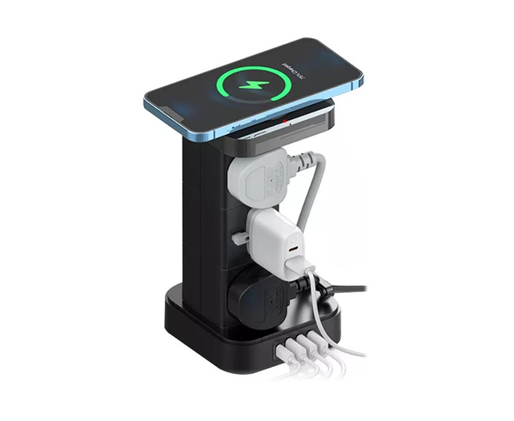 این چند راهی برق با اینکه از تکنولوژی های شارژ مختلفی مانند PD (Power Delivery) ، QC (Quick Charge) و شارژ بیسیم Qi پشتیبانی می کند ، امکانات گسترد های برای شارژ کردن انواع دستگاه ها ارائه می دهد . این ویژگی به شما اجازه می دهد تا با همان چند راهی برق ، از نیاز های شارژ مختلف خود راضی شوید و به صرفهترین شکل از انرژی استفاده کنید .