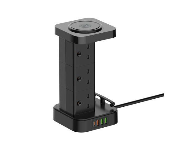 این چند راهی برق با داشتن پد شارژر بیسیم ، به شما امکان می دهد تا از دستگاه هایی که از فناوری شارژ بیسیم Qi پشتیبانی می کنند ، بدون نیاز به کابل ، شارژ گیری کنید . این ویژگی بسیار مناسب برای شارژ کردن اسمارتفون ها و دیگر دستگاه های بیسیم است .