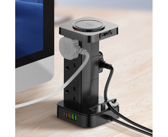 این چند راهی برق با داشتن پد شارژر بیسیم ، به شما امکان می دهد تا از دستگاه هایی که از فناوری شارژ بیسیم Qi پشتیبانی می کنند ، بدون نیاز به کابل ، شارژ گیری کنید . این ویژگی بسیار مناسب برای شارژ کردن اسمارتفون ها و دیگر دستگاه های بیسیم است .