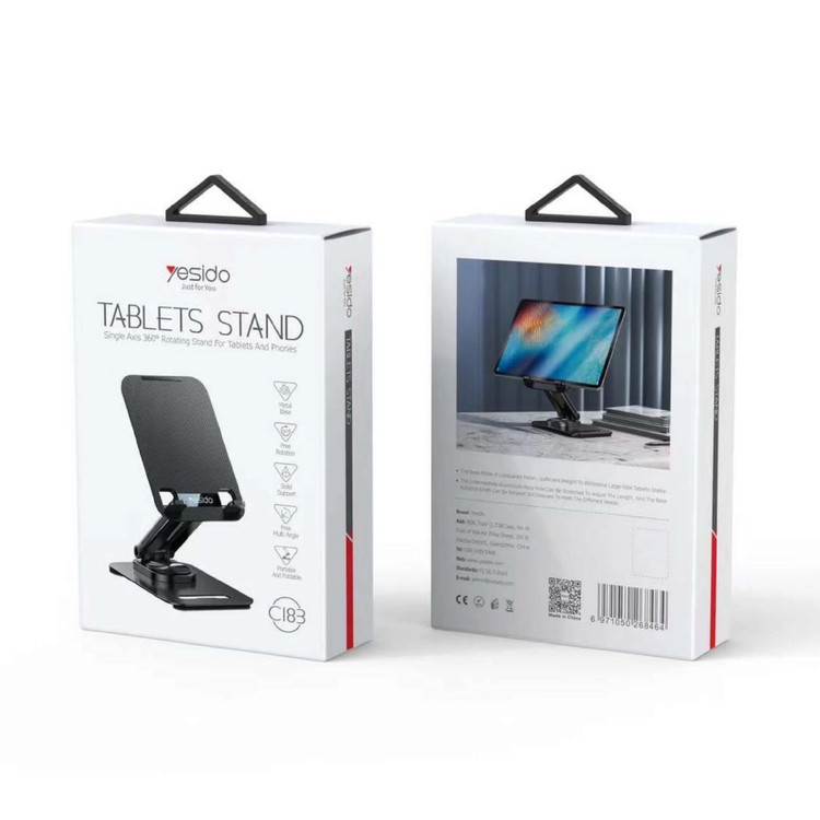 پایه تبلت Yesido C183 یک استند حرفهای و باکیفیت است که برای نگهداری انواع تبلت و گوشی طراحی شده است. این پایه با قابلیت چرخش ۳۶۰ درجه و تنظیم ارتفاع و زاویه دید، تجربهای راحت و ارگونومیک را هنگام تماشای فیلم، مطالعه، و یا کار با دستگاه برای شما فراهم میکند.