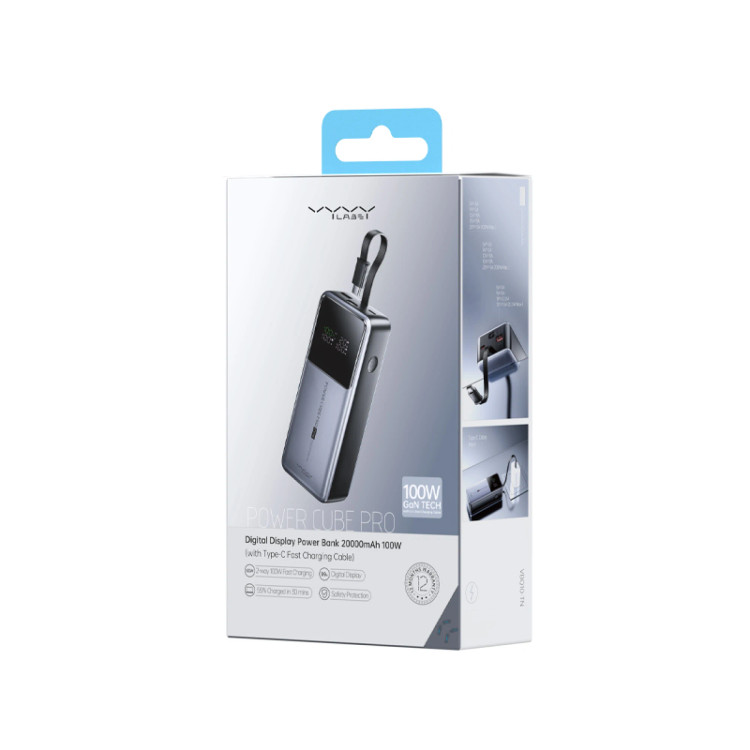 با Vyvylabs Power Cube Pro 100W، قدرت، سرعت و طراحی حرفهای را در کنار هم داشته باشید. این پاوربانک قدرتمند، با ظرفیت بالا، شارژ سریع ۱۰۰ واتی و نمایشگر دیجیتال، یک انتخاب هوشمند برای کاربران حرفهای و پرمصرف است. ⚡💼