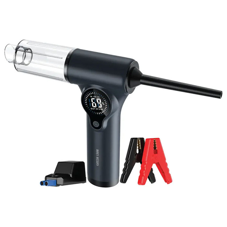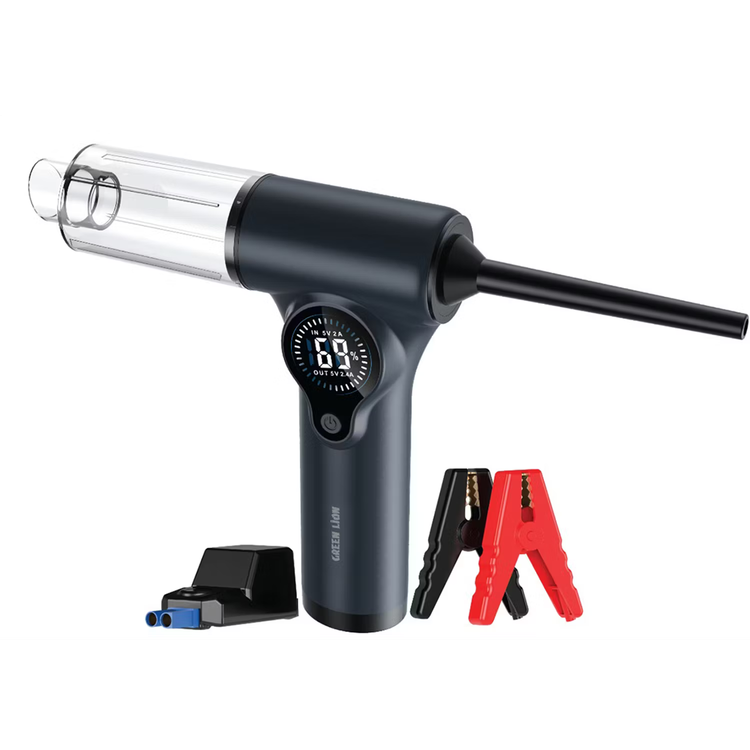 دستگاه Green Lion Ignitor 12V Jump Starter یک ابزار حرفهای و چندمنظوره است که ترکیبی از جامپ استارتر خودرو، بلوئر (باددم)، جاروبرقی پرقدرت و پاوربانک همراه را در خود دارد. این محصول با طراحی هوشمند و قدرت بالا، برای شرایط اضطراری، تمیزکاری خودرو و حتی شارژ دستگاههای دیجیتال شما ساخته شده است.