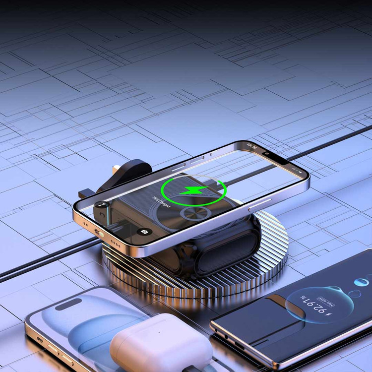 1. 🔄 سه کاره و هوشمند: همزمان پاوربانک، شارژر بیسیم و شارژر دیواری.
