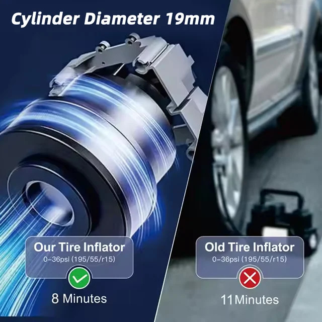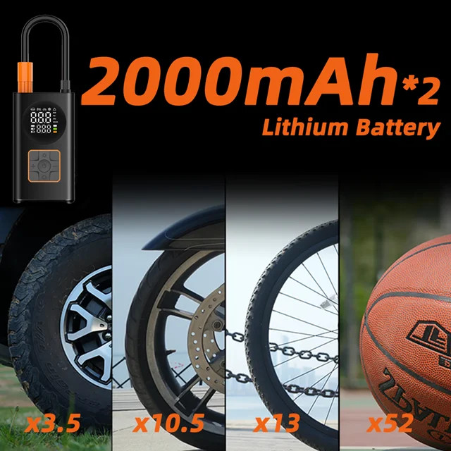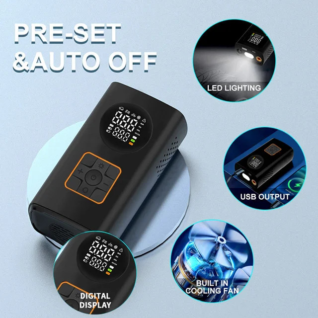 دارای باطری داخلی شارژی بوده و بدون نیاز به سیم برق، در هر مکانی قابل استفاده است. صفحهنمایش دیجیتال آن میزان فشار باد (PSI, BAR, KPA, Kg/cm²) را بهصورت دقیق نمایش میدهد و بهصورت خودکار در فشار تنظیمشده متوقف میشود تا از باد بیش از حد جلوگیری کند.