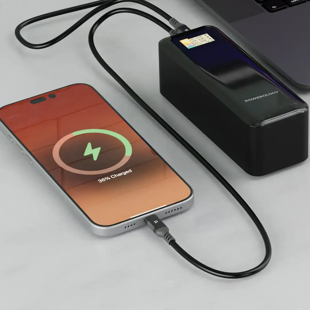محصولی که مد نظر دارید: Powerology NeuroVolt 140 – 27000 mAh Power Bank (رنگ مشکی). این پاوربانک برای کاربرانی طراحی شده که نیاز به شارژ سریع و پرقدرت دارند — با ظرفیت بالا (27000 میلیآمپرساعت) و توان خروجی تا 140 وات، امکان تغذیه دستگاههایی مانند لپتاپ، تبلت و گوشی را فراهم میآورد.