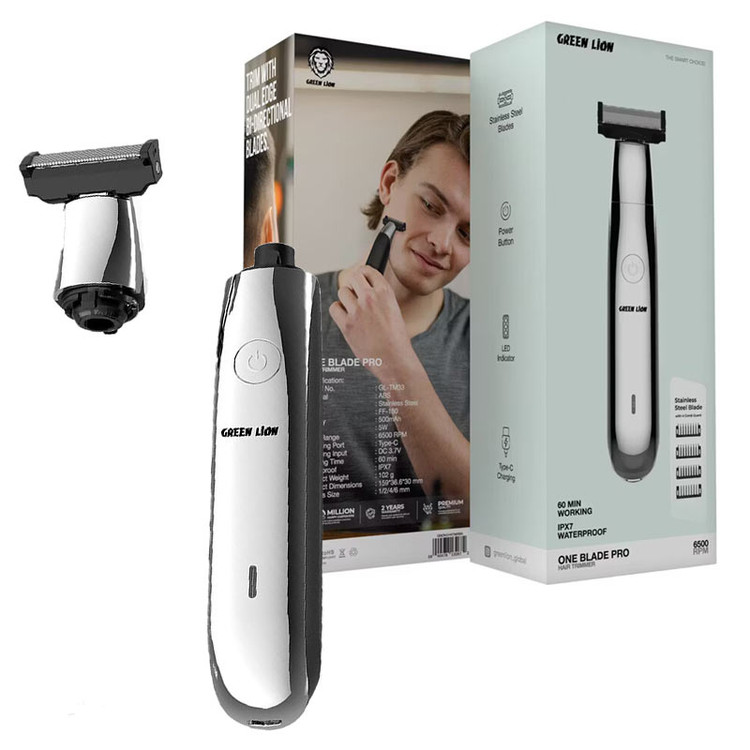 ماشین اصلاح گرین لاین مدل One Blade Pro یک انتخاب حرفهای برای اصلاح دقیق و راحت است که با طراحی سبک و بدنه مقاوم از جنس ABS عرضه میشود . این دستگاه به موتور قدرتمند ۶۵۰۰ دور در دقیقه مجهز است و با توان ۵ وات عملکردی روان و سریع ارائه میدهد . وجود تیغههای استیل ضدزنگ ، اصلاحی ایمن و ماندگار را تضمین کرده و همراه با ۴ شانه اصلاح در اندازههای ۱، ۲، ۴ و ۶ میلیمتر امکان شخصیسازی طول اصلاح را فراهم میکند . این ماشین اصلاح دارای باتری ۵۰۰ میلیآمپر ساعتی است که پس از شارژ کامل از طریق درگاه Type-C تا ۶۰ دقیقه استفاده بیسیم را پشتیبانی میکند . علاوه بر این ، با استاندارد ضدآب IPX7 میتوان دستگاه را به راحتی شستوشو کرد و حتی در شرایط مرطوب نیز از آن استفاده نمود . طراحی سبک با وزن پایین ، این محصول را برای استفاده روزمره و حتی سفر گزینهای ایدهآل میسازد .