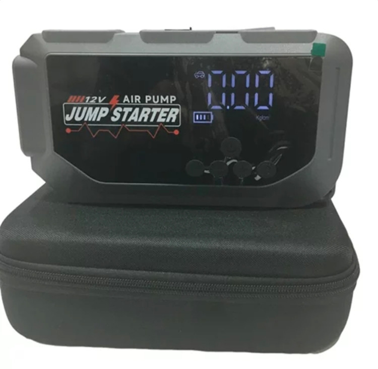 جامپ استارتر و پمپ باد خودرو با پاور بانک و چراغ LED مدل K3