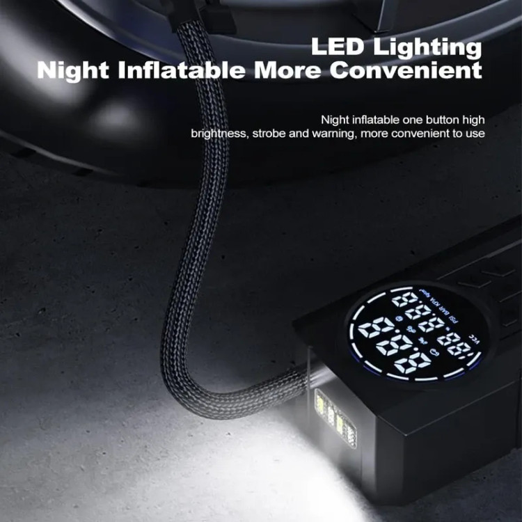همچنین با داشتن باطری داخلی دیگر نیاز به وصل کردن به فندکی خودرو نیست و با یک بار شارژ کامل توان باد کردن چندین دفعه از لاستیک ها را داراست از ویژگی دیگر این محصول قطع خودکار پس از رسیدن به فشار مورد نظر است و تنظیم باد خودکار را به مصرف کننده ارائه میدهد از قابلیت دیگر این محصول پاور بانک گوشی موبایل می باشد که در مواقع اضطراری میتوان گوشی موبایل را با آن شارژ کرد. این محصول دارای نمایشگر دیجیتالی بزرگ با قابلیت نمایش میزان فشار باد در واحدهای مختلف (PSI، BAR، KPA، Kg/cm²) است و دارای چندین نازل مختلف برای استفاده در وسایل مختلف میباشد.
