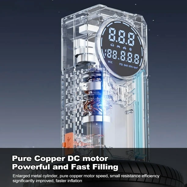 همچنین با داشتن باطری داخلی دیگر نیاز به وصل کردن به فندکی خودرو نیست و با یک بار شارژ کامل توان باد کردن چندین دفعه از لاستیک ها را داراست از ویژگی دیگر این محصول قطع خودکار پس از رسیدن به فشار مورد نظر است و تنظیم باد خودکار را به مصرف کننده ارائه میدهد از قابلیت دیگر این محصول پاور بانک گوشی موبایل می باشد که در مواقع اضطراری میتوان گوشی موبایل را با آن شارژ کرد. این محصول دارای نمایشگر دیجیتالی بزرگ با قابلیت نمایش میزان فشار باد در واحدهای مختلف (PSI، BAR، KPA، Kg/cm²) است و دارای چندین نازل مختلف برای استفاده در وسایل مختلف میباشد.