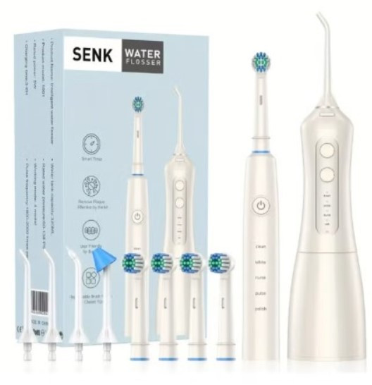 با کیت مسواک برقی و نخ دندان هوشمند SENK – راهحل همهکاره شما برای لبخندی روشنتر و سالمتر – بهداشت دهان و دندان سطح بالاتری را تجربه کنید. این کیت با داشتن مخزن آب جداشدنی ۳۲۰ میلیلیتری، ۴ حالت تمیز کردن قدرتمند و فناوری پالس فرکانس بالا، پلاک، بقایای مواد غذایی و باکتریها را حتی از نواحی دور از دسترس نیز پاک میکند. دسته ارگونومیک و موهای نایلونی نرم، تجربه مسواک زدن راحت را تضمین میکنند، در حالی که فشار قابل تنظیم نخ دندان، لثهها را سالم نگه میدارد. این دستگاه که برای بریسها، ایمپلنتها و دندانهای حساس ایدهآل است، قابل حمل، قابل شارژ با USB و تا ۱ هفته عمر باتری ارائه میدهد – که آن را برای استفاده در منزل و سفر ایدهآل میکند. این دستگاه با ۴ سر مسواک و ۴ نازل ارائه میشود و آن را به هدیهای عالی برای زوجها، خانوادهها یا به عنوان هدیه تعطیلات تبدیل میکند
