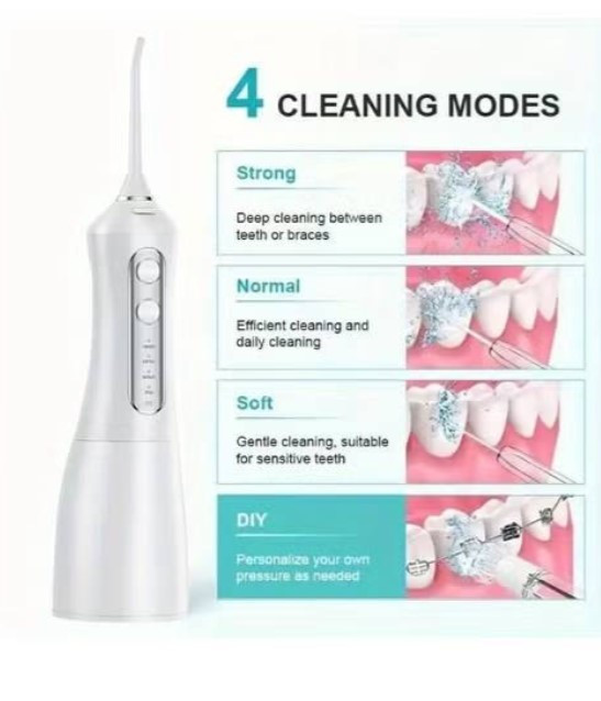 حذف مؤثر پلاکها و باقیماندههای غذا با فشار آب، بدون آسیب به لثهها. دارای دکمههای تنظیم قدرت و حالت عملکرد.