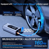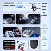 علاوه بر عملکرد به عنوان پمپ باد، این دستگاه یک جامپ استارتر قوی برای روشن کردن خودرو در مواقع ضروری است. وقتی باتری ماشین شما ضعیف میشود، میتوانید به راحتی از آن برای استارت زدن استفاده کنید. همچنین دارای یک پاوربانک اضطراری برای شارژ دستگاههای الکترونیکی مانند گوشی همراه و یک چراغ قوه با نور معمولی و حالت SOS برای شرایط اضطراری است.