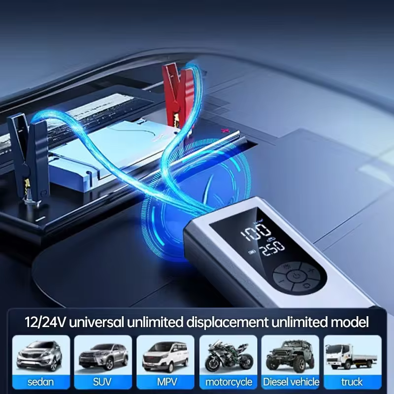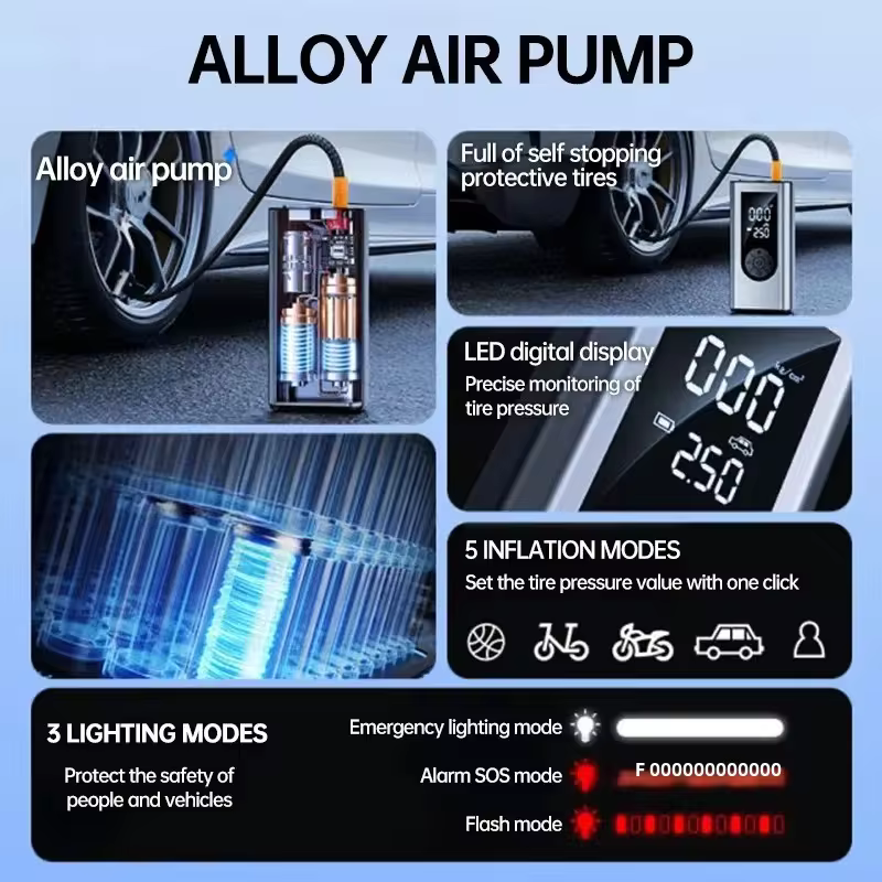 علاوه بر عملکرد به عنوان پمپ باد، این دستگاه یک جامپ استارتر قوی برای روشن کردن خودرو در مواقع ضروری است. وقتی باتری ماشین شما ضعیف میشود، میتوانید به راحتی از آن برای استارت زدن استفاده کنید. همچنین دارای یک پاوربانک اضطراری برای شارژ دستگاههای الکترونیکی مانند گوشی همراه و یک چراغ قوه با نور معمولی و حالت SOS برای شرایط اضطراری است.