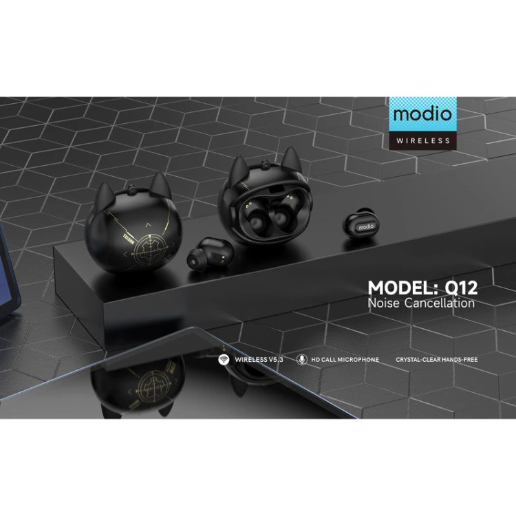 🎧 هدفون بیسیم مودیو Modio Q12 (طرح فانتزی – Black Cat)