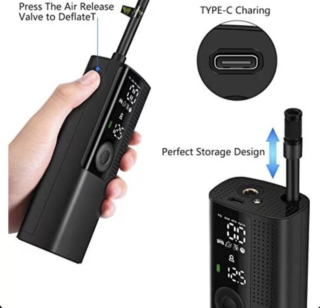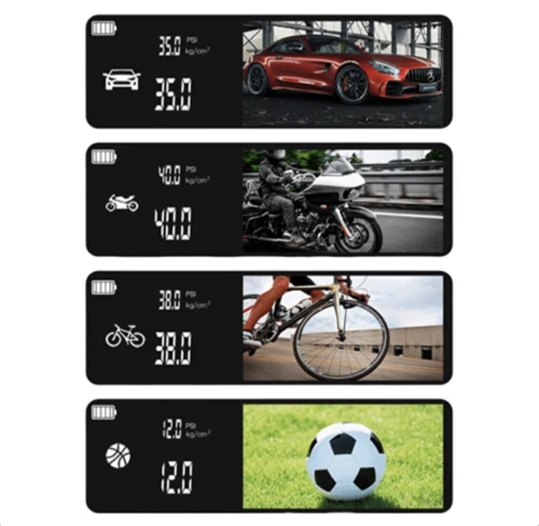 این پمپ باد همچنین دارای صفحه نمایش دیجیتال برای نمایش فشار واقعی در لحظه است، که به کاربران کمک میکند تا از میزان باد داخل تایرها آگاه باشند و از پر شدن بیش از حد یا کمبود باد جلوگیری