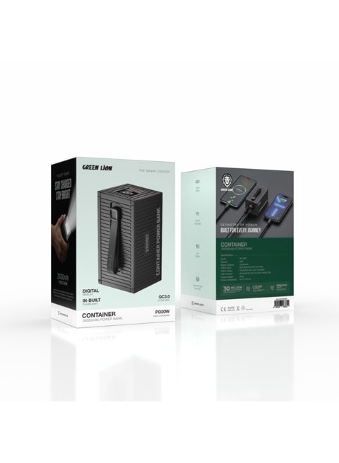 با پاوربانک Green Lion Container 20000mAh دیگر نگران تمام شدن باتری نباشید. این شارژر قابل حمل به گونهای طراحی شده است که به طور همزمان به چندین دستگاه برق سریع ارائه میدهد. بزرگترین مزیت آن شارژ فوقالعاده سریع آن است، با خروجی 20W Power Delivery (PD) از طریق پورت USB-C و خروجی قدرتمند 22.5W Quick Charge (QC3.0) از طریق پورت USB-A. حتی شامل یک کابل شارژ 4 کاره همه کاره در جعبه است، بنابراین میتوانید تقریباً هر تلفن یا تبلتی را فوراً شارژ کنید! با ظرفیت 20000 میلیآمپر ساعت، چندین بار شارژ کامل دریافت میکنید و همیشه میتوانید میزان شارژ باقی مانده را روی صفحه نمایش دیجیتال شفاف بررسی کنید. طراحی هندسی شیک است و بند حمل داخلی، حمل و نقل آن را آسان میکند. برای ایمنی و راحتی بیشتر، دارای یک چراغ قوه داخلی نیز میباشد. پاوربانک Green Lion Container 20000mAh یک راه حل نهایی برای سفر و زندگی روزمره است.