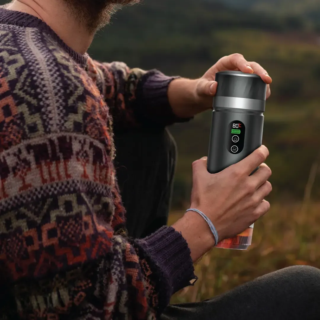 با اسپرسو ساز مسافرتی گرین لاین مدل Campinas همیشه میتوانید قهوهای تازه و خوشطعم در هر کجا دم کنید. طراحی کمحجم، وزن سبک و قابلیت حمل آسان، این دستگاه را برای سفر، طبیعتگردی و حتی محل کار ایدهآل کرده است. ظرفیت مخزن آب 80 میلیلیتر و فشار واقعی 20 بار به شما امکان میدهد اسپرسوی خوشطعم درست مثل کافیشاپ را در چند دقیقه آماده کنید. برای مشاهده قیمت روز و خرید آسان، به صفحه اصلی امید گجت مراجعه کنید.این قهوهساز از پلاستیک ABS با کیفیت، فولاد ضد زنگ و پلیکربنات ساخته شده است تا مقاومت و دوام مطلوبی داشته باشد. باتری داخلی 7500 میلیآمپرساعتی توان شارژ چندباره تا حدود 40 فنجان قهوه را فراهم میکند و از طریق درگاه USB Type-C به سرعت شارژ میشود. سیستم کنترل هوشمند با ولوم Jog Dial به شما امکان انتخاب درجه حرارت تا 90 درجه و کنترل پخت را میدهد. اگر سوالی در مورد کارکرد و راهنمایی نیاز دارید به تماس با ما مراجعه کنید.در مدت زمان 6 تا 10 دقیقه آب به دمای مطلوب رسیده و تنها با یک دکمه، اسپرسوی تازه دمآوری میشود. از کپسولهای قهوه و پودر قهوه نیز پشتیبانی میکند و در زمان صرفهجویی قابل توجهی دارد. کاربران حرفهای و مبتدی هر دو میتوانند بهراحتی از اسپرسوساز استفاده کنند و لحظاتی لذتبخش از نوشیدن قهوه داشته باشند.