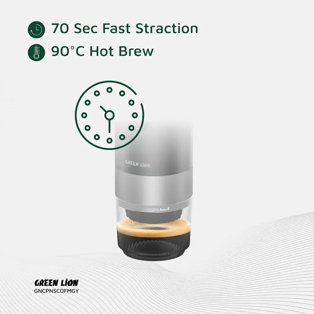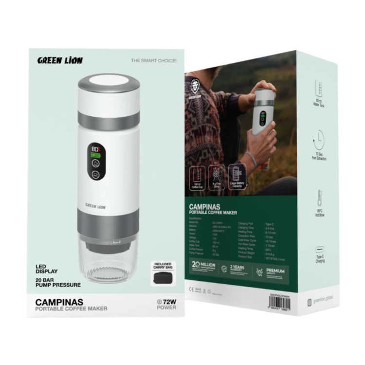 اسپرسو ساز مسافرتی گرین لاین Green Lion Campinas Portable Coffee Maker | شارژ USB-C، ظرفیت 80 میلیلیتر و فشار 20 بار