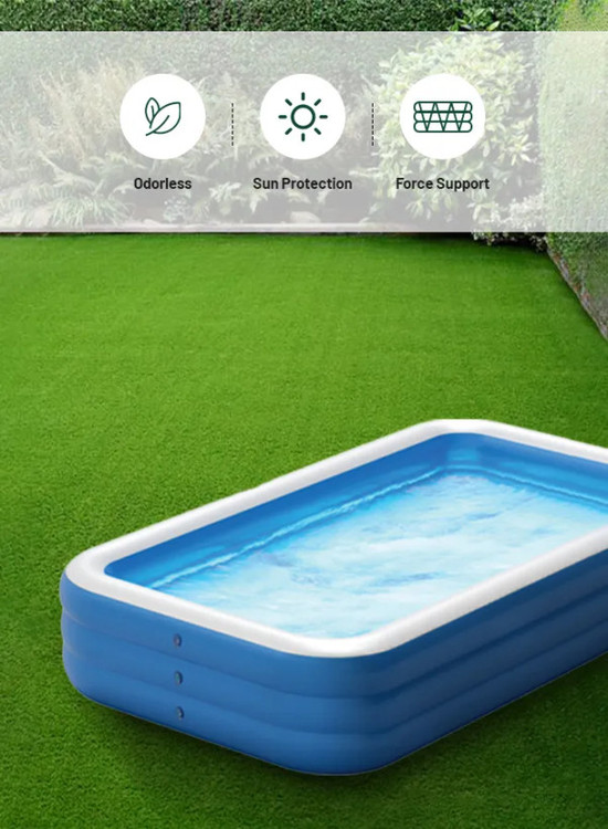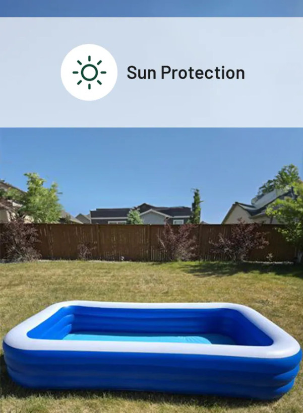 بدنه استخر از PVC چندلایه ساخته شده که در برابر تابش آفتاب، نفوذ آب و ساییدگی مقاوم است. این ویژگی باعث میشود طول عمر بالایی داشته باشد و چند فصل متوالی قابل استفاده باشد.
