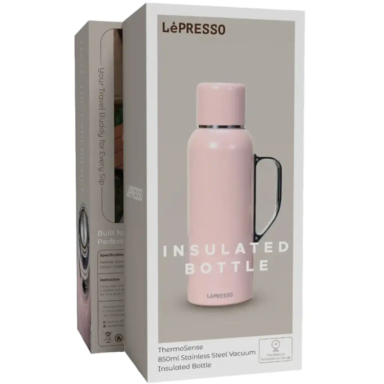 بطری عایق دار خلا استیل ضدزنگ LePresso ThermoSense 850ml یک همراه بینظیر برای کسانی است که به ویژگیهای باکیفیت، دوام فوقالعاده و طراحیهای خلاقانه علاقه دارند. این بطری از بهترین استیل ضدزنگ SUS 316 ساخته شده است که نه تنها امکان بروز کامل طعم نوشیدنیها را فراهم میکند، بلکه مقاومت فوقالعادهای در برابر خوردگی دارد. فناوری عایقکاری دو جداره خلا میتواند دمای نوشیدنیها را برای 10 تا 12 ساعت حفظ کند، بنابراین یک همراه ایدهآل برای سفر، کار یا پیادهروی است. شما نیازی به پر کردن مکرر ندارید، زیرا ظرفیت بزرگ 850 میلیلیتری آن اجازه میدهد کل نیاز آب روزانه خود را یکجا بنوشید. نشانگر دمای مکانیکی به شما اجازه میدهد بهسرعت دمای نوشیدنی خود را بررسی کنید، بنابراین میتوان گفت همیشه با دمای مناسب نوشیدنی خود را مینوشید. طراحی شیک و مدرن بطری ThermoSense نه تنها ظرافت را ارائه میدهد بلکه کاربردی نیز هست، در حالی که درپوش ضد نشت از ایجاد بینظمی هنگام جابهجایی جلوگیری میکند.
