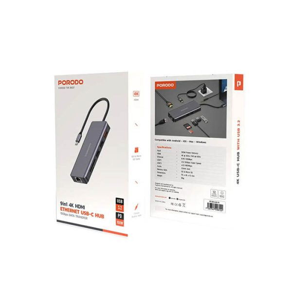 مشخصات کلیPorodo 9in1 USB-C Hub PD-91CHB