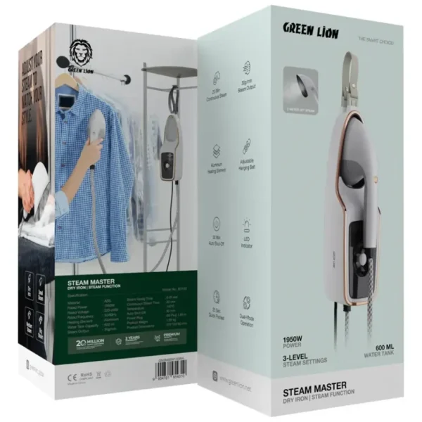 اتوی خشک و بخار Green Lion Steam Master با عملکرد بخار 1950 وات – سفید، عملکرد فوقالعادهای را با حالتهای خشک و بخار ارائه میدهد.
