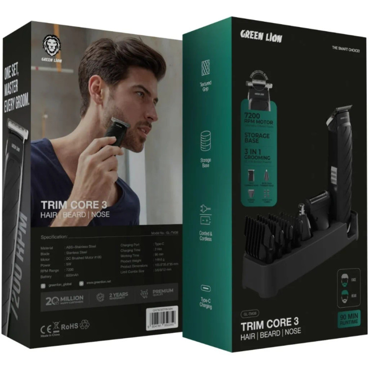 اگر دنبال یک ماشین اصلاح چندکاره و جمعوجور برای مرتبکردن سریع ریش، اصلاح موهای خطی و همچنین اصلاح موهای بینی هستید، Green Lion Trim Core 3 دقیقاً همان گزینهای است که هم برای خانه و هم برای سفر عالی جواب میدهد. بدنهی مقاوم از ABS + استیل ضدزنگ ساخته شده و تیغهی استنلس استیل آن برای اصلاح دقیق و نرم طراحی شده است.