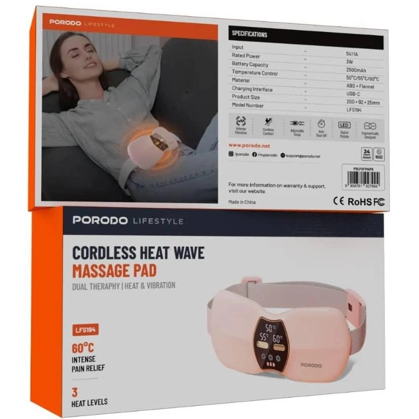 پد ماساژ بیسیم Porodo Lifestyle Heat Wave یک دستگاه کوچک و جمع و جور است که گرما و لرزش درمانی آرامشبخش را ارائه میدهد. انرژی مورد نیاز این دستگاه توسط یک باتری قابل شارژ ۲۵۰۰ میلیآمپر ساعتی تأمین میشود تا این دستگاه کاملاً بیسیم و قابل حمل باشد. این پد شارژ دارای سه تنظیم گرما است که میتواند ۵۰ درجه سانتیگراد، ۵۵ درجه سانتیگراد و ۶۰ درجه سانتیگراد باشد، بسته به سطح راحتی مورد نظر. ساخته شده از مواد ABS سخت با همافزایی فلانل نرم، لمس ملایم پوست و عملکرد قوی را تضمین میکند. این درمان دوگانه، گرما را با لرزش ترکیب میکند تا به تنش و آرامش عضلات کمک کند. شارژ آسان از طریق پورت USB-C به معنای مصرف کم برق با تنها ۵ ولت/۱ آمپر است، به این معنی که بسیار صرفهجویی در مصرف انرژی است و پس از شارژ مجدد میتوان چندین بار از آن استفاده کرد. این پد ماساژ Heat Wave یک راه حل خوب برای تسکین در حین انجام برخی از کارهای روزمره در خانه یا سفر، در هر زمان و هر مکان است.