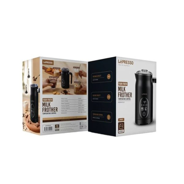 کف ساز شیر لپرسو مدل LPCFFM0027 دستگاهی کارآمد و جمعوجور است که با توان ۵۰۰ وات ، قابلیت تهیه کف شیر گرم یا سرد را در مدت زمانی کوتاه فراهم میکند . این مدل دارای دو ظرفیت مجزا است : ۲۷۰ میلیلیتر برای گرم کردن شیر و ۱۴۰ میلیلیتر برای کفسازی ، که آن را مناسب استفاده روزمره در منزل یا محیطهای اداری میسازد . بدنه این دستگاه با طراحی ساده و مینیمال ساخته شده و دارای مخزن داخلی با پوشش نچسب برای تمیزکاری آسان است . کار با دستگاه تنها با یک دکمه لمسی انجام میشود و امکان انتخاب بین حالت گرم یا سرد وجود دارد . ولتاژ کاری آن ۲۲۰ تا ۲۴۰ ولت در فرکانس ۵۰ تا ۶۰ هرتز است که با برق شهری ایران سازگاری دارد ، اما نوع دوشاخه در برخی نسخهها ممکن است نیاز به تبدیل داشته باشد . ابعاد کفساز و وزن سبک آن را به گزینهای سبک و مناسب برای میز آشپزخانه یا کافه خانگی تبدیل میکند .