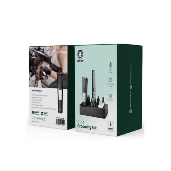 ست اصلاح 5 کاره گرین لاین مدل GN5N1GROMSTBK یک ابزار آرایشی کامل و با کیفیت است که داشتن آن در هر خانهای ضروری است . این محصول دارای 5 سری کاربردی و قابل تعویض است که هر کدام از آن ها کاراییهای متفاوتی دارند، دارای یک سری برای اصلاح موی سر و صورت، یک مو زن بینی و گوش، یک سری صفر زن، یک سری برای خط زنی و یک سری برای اصلاح موهای زیر بغل و بدن می باشد ؛ همچنین در بسته بندی این محصو ل، چند شانه اصلاح در سایزهای مختلف نیز قرار داده شده است . ماشین اصلاح موی سر و صورت گرین لاین مجهز به نمایشگر LED جهت نشان دادن میزان باتری است .