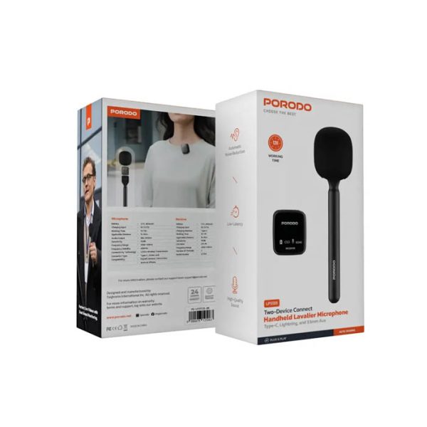 میکروفون یقه ای پرودو مدل PD-LFST133 دارای سیستم انتقال بیسیم 2.4 گیگاهرتز با تأخیر بسیار کم و کیفیت صدای HD است که پوشش فرکانسی آن از ۲۰ هرتز تا ۲۰ کیلوهرتز بوده و حساسیت صوتی آن ۹۰ دسیبل ثبت شده است ؛ همچنین نسبت سیگنال به نویز یشتر از ۷۵ دسیبل موجب صدای واضح و بدون اختلال میشود . هر دو قسمت فرستنده (میکروفون) و گیرنده (Receiver) مجهز به باتری 3.7ولت ، 400میلی آمپر هستند که تا ۱۰–۱۲ ساعت کار مداوم پشتیبانی میکنند . ورودی شارژ DC 5V/1A از طریق پورت Type‑C انجام میشود . برد انتقال موثر بین ۱۵ تا ۳۰ متر بوده و خروجی صدای بیشینه برای میکروفون حدود ۳۰۰ میلیولت است . این میکروفون دارای کانکتورهای Type‑C و جک ۳.۵ میلیمتری است و برای استفاده با دوربین دیجیتال ، گوشیهای اندروید و آیفون مناسب میباشد . گیرنده آن کانال دوگانه دارد تا با دو دستگاه بهطور همزمان اتصال برقرار کند . این طراحی جمعوجور و سبک برای کاربردهای حرفهای در میدان ، تولید محتوا و تدریس آنلاین بسیار مناسب است .