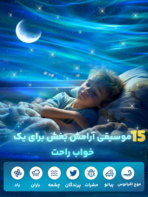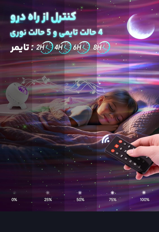 تایمر خواب هوشمند : خستهای و میخوای با نور و موسیقی بخوابی؟ تایمر رو بذار روی 1، 2 یا 4 ساعت؛ خودش خاموش میشه